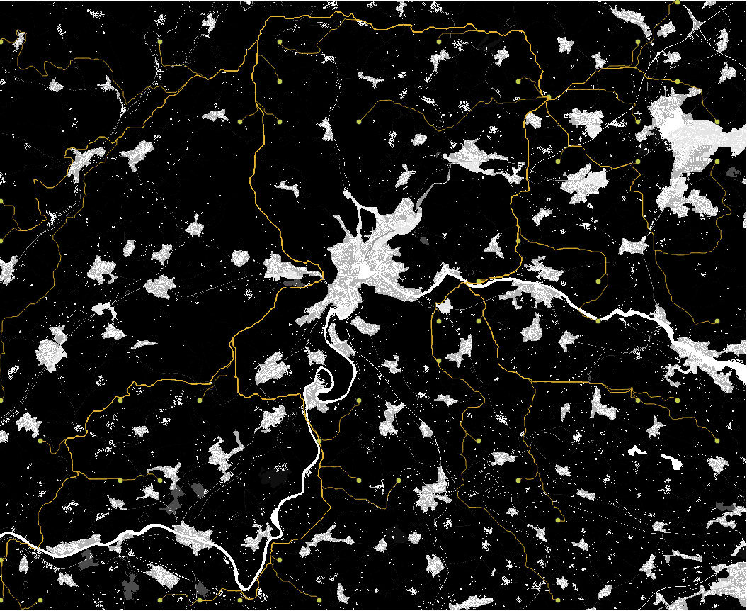 - Sobald das Tool gelaufen ist, werden die Layer Least Cost Path sowie Start- und Endpunkte dem Projekt hinzugefügt (siehe Abbildung 3).