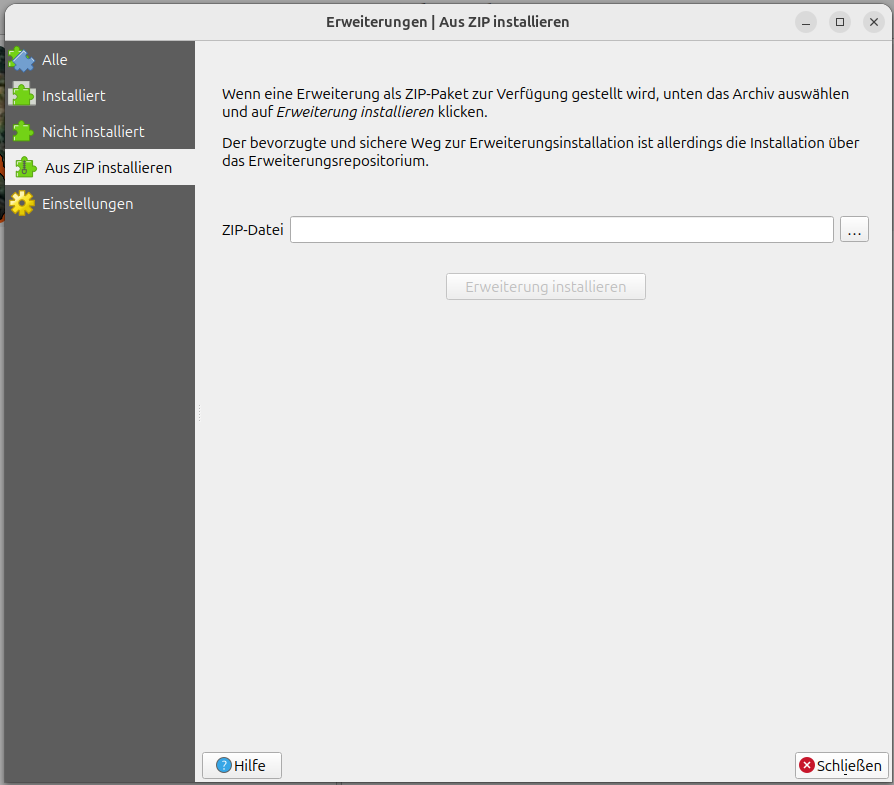 Das Plugin kann auch via einem Zip File installiert werden. Dafür muss das Zipfile via folgendem Link heruntergeladen werden: